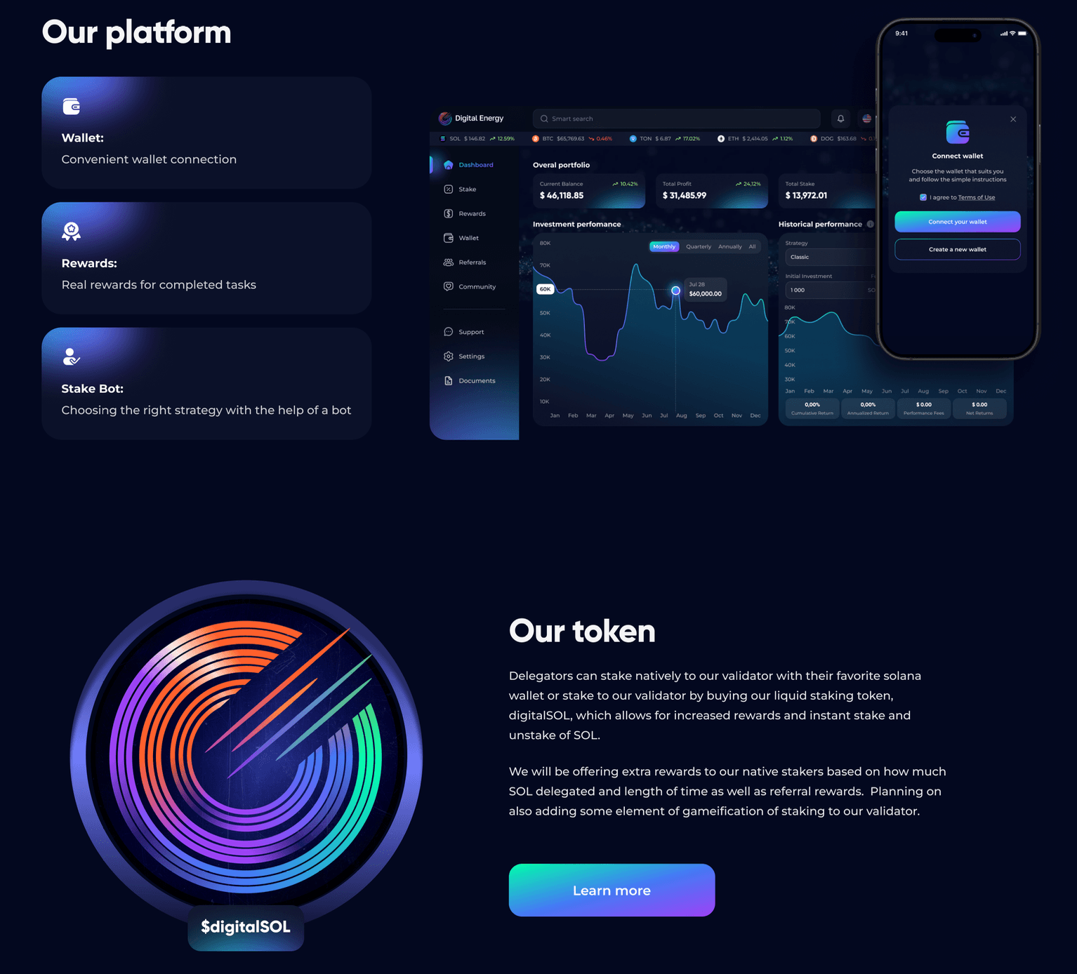 Our upcoming platform will further streamline staking and portfolio management, ensuring Digital Energy remains your trusted partner in the Solana ecosystem.